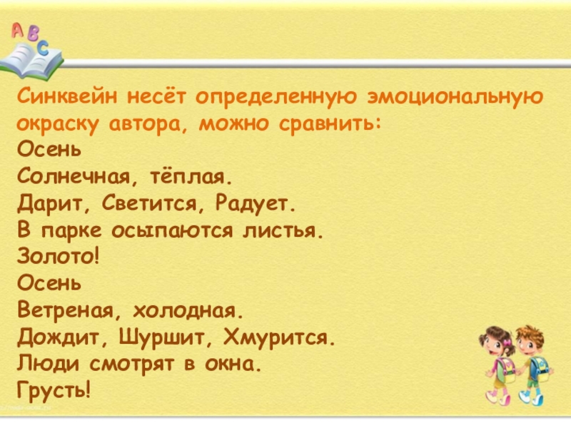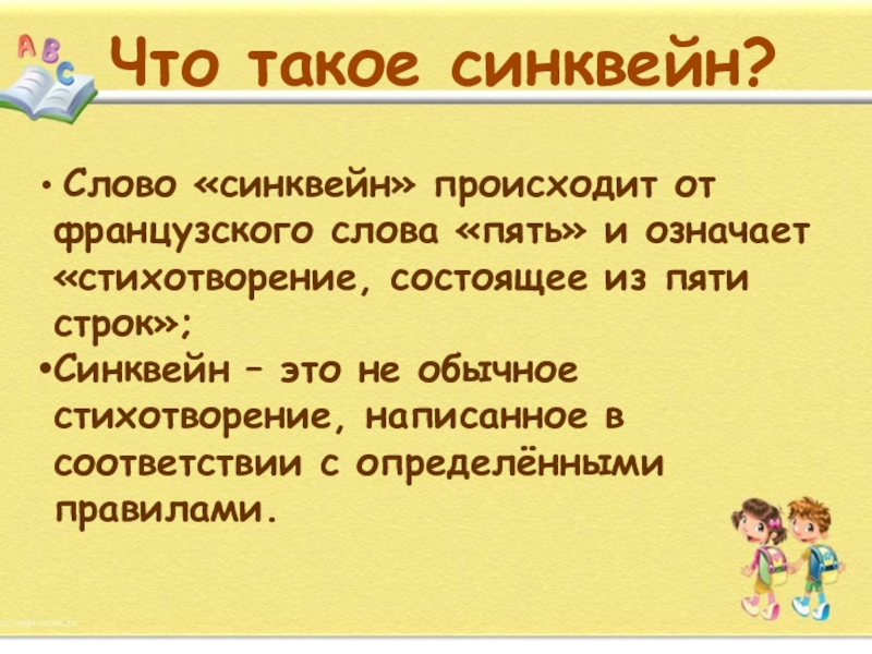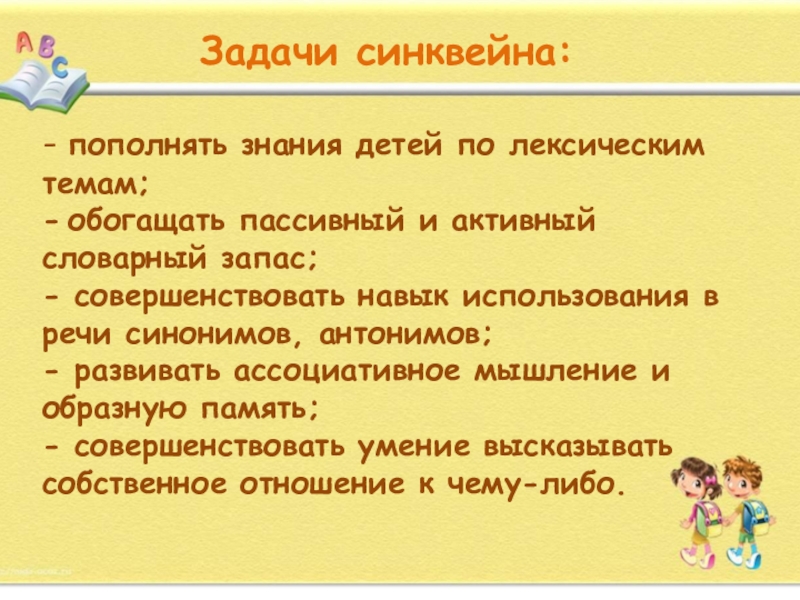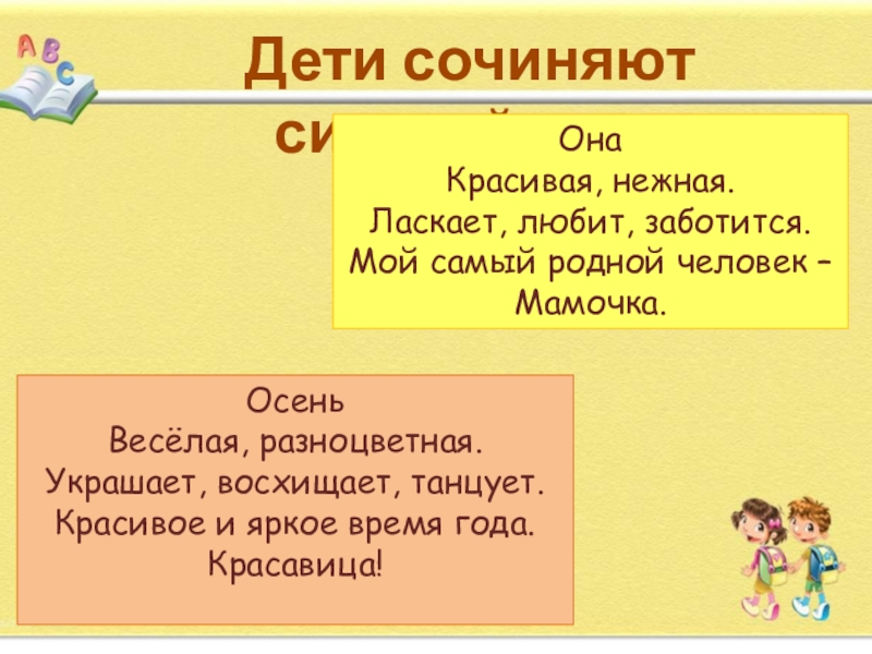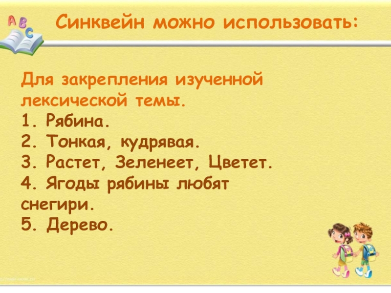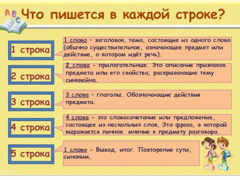 2 слова - прилагательные. Это описание признаков предмета или его свойства, раскрывающие тему синквейна.