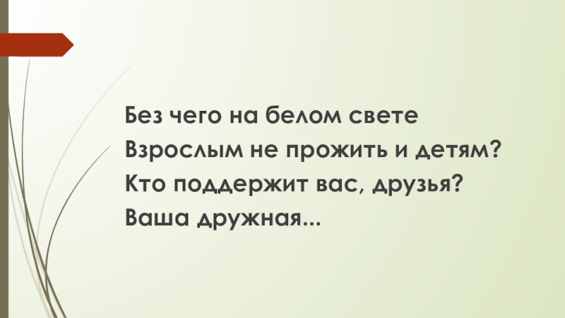 Без чего на белом свете Взрослым не прожить и детям?Кто поддержит вас, друзья?Ваша дружная...