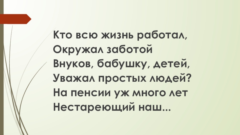 Кто всю жизнь работал,Окружал заботойВнуков, бабушку, детей,Уважал простых людей?На пенсии уж много летНестареющий наш...