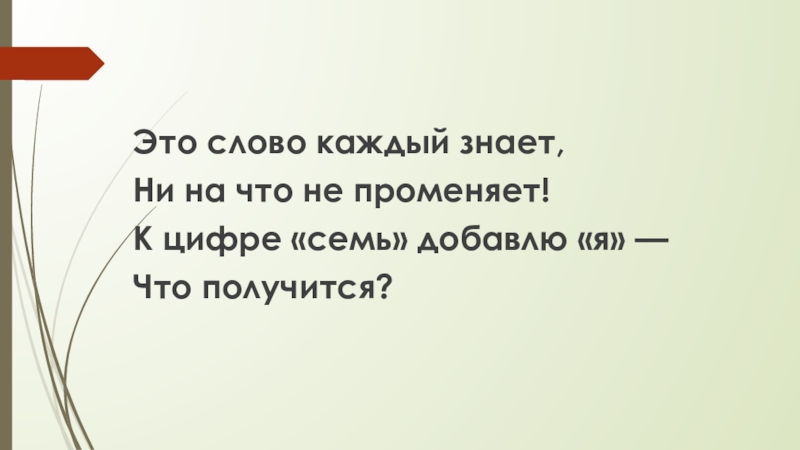 Это слово каждый знает,Ни на что не променяет!К цифре «семь» добавлю «я» —Что получится?