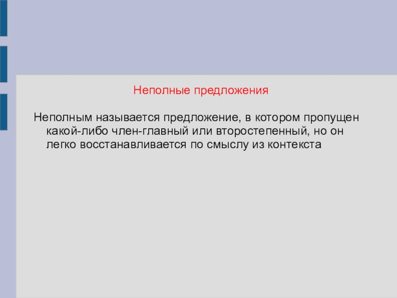 Неполным называется предложение, в котором пропущен какой-либо член-главный или второстепенный,