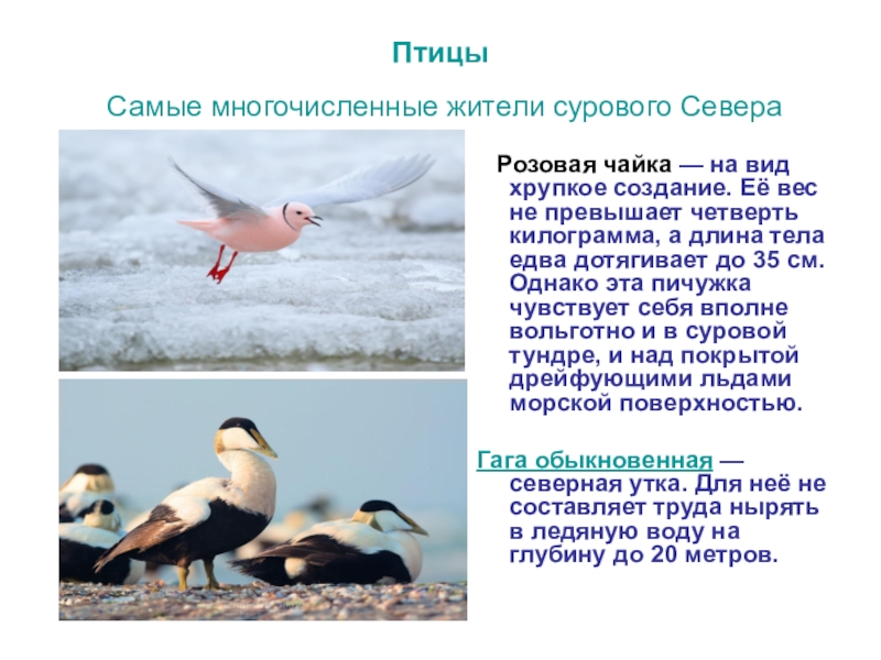 вид хрупкое создание. Её вес не превышает четверть килограмма, а длина тела едва дотягивает до 35 см. Однако эта пичужка чувствует себя вполне вольготно и в суровой тундре, и над покрытой дрейфующими льдами морской поверхностью.