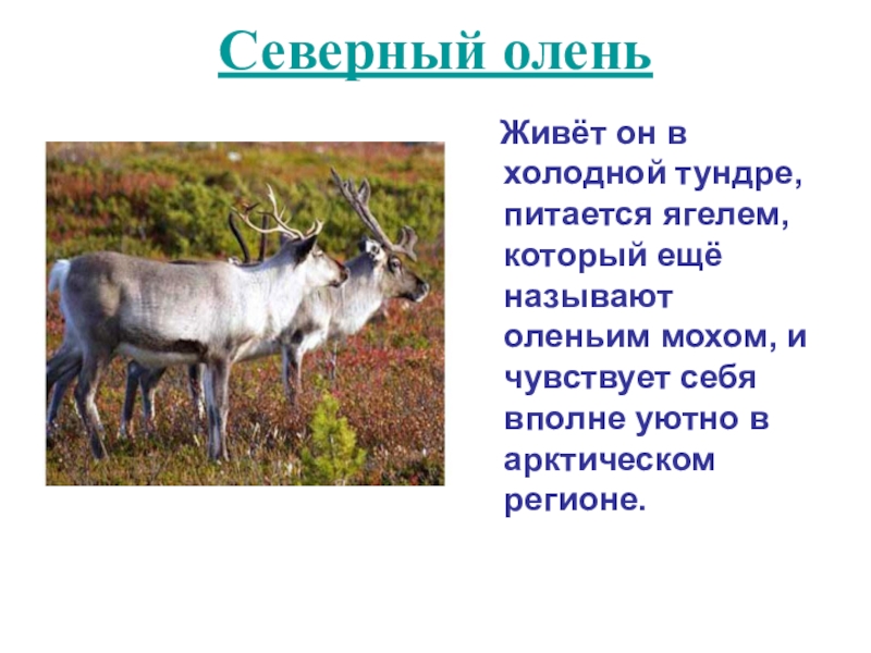 ещё называют оленьим мохом, и чувствует себя вполне уютно в арктическом регионе.