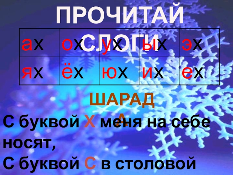 ПРОЧИТАЙ СЛОГИШАРАДАС буквой Х меня на себе носят,С буквой С в столовой просят.