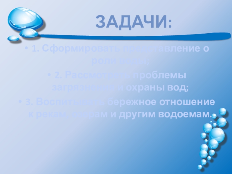 3. Воспитывать бережное отношение к рекам, озерам и другим водоемам.