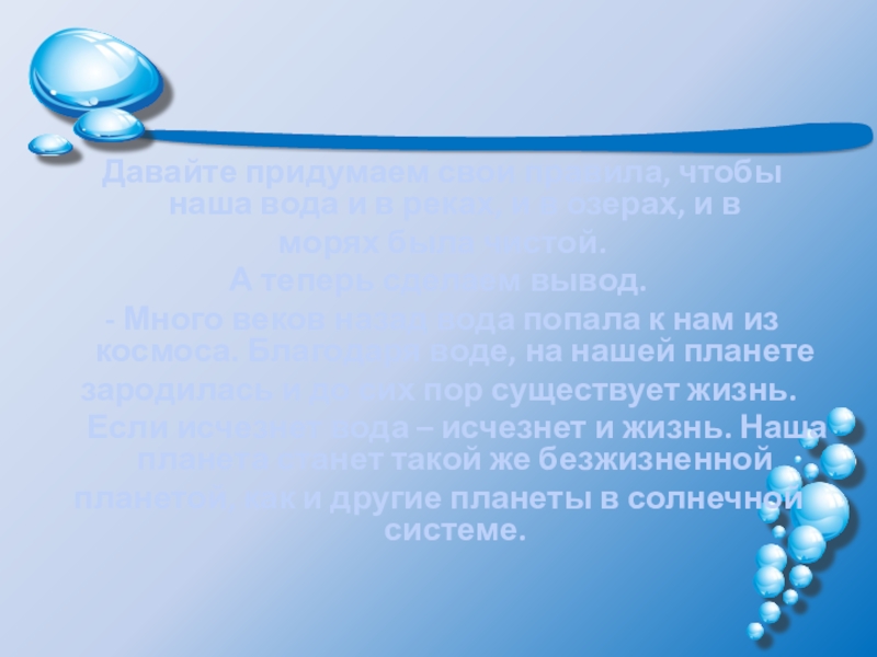 Давайте придумаем свои правила, чтобы наша вода и в реках,