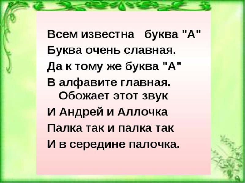Презентация, доклад по развитию речи на тему Звук [а] буква А а