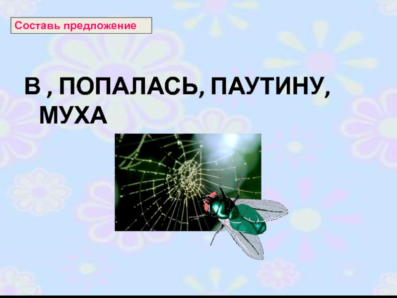 В , ПОПАЛАСЬ, ПАУТИНУ, МУХАСоставь предложение