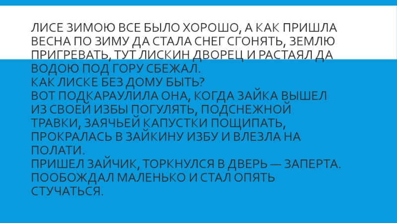 Слайд 8Лисе зимою все было хорошо, а как пришла весна по зиму