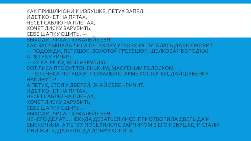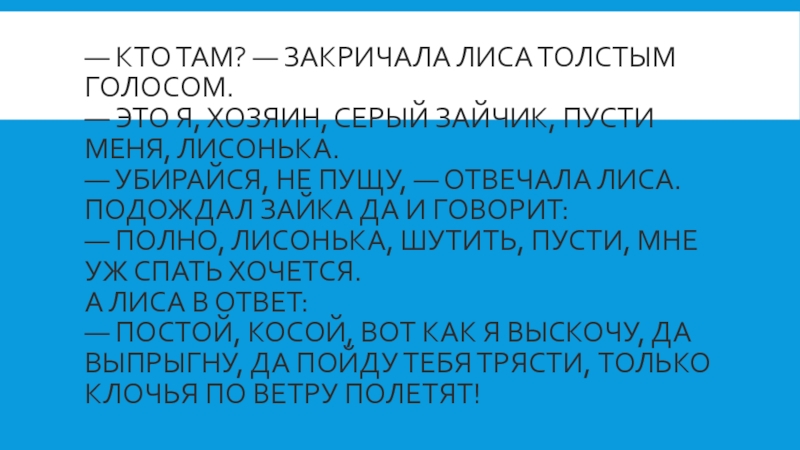 Слайд 9— Кто там? — закричала Лиса толстым голосом.