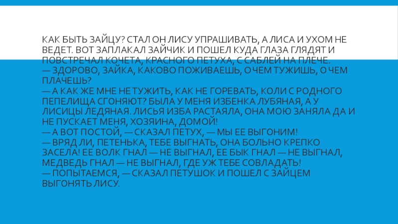 Слайд 1Русская народная сказка «Лиса и заяц»