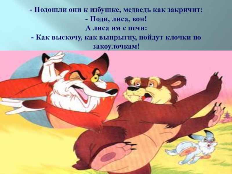Слайд 18- Подошли они к избушке, медведь как закричит: