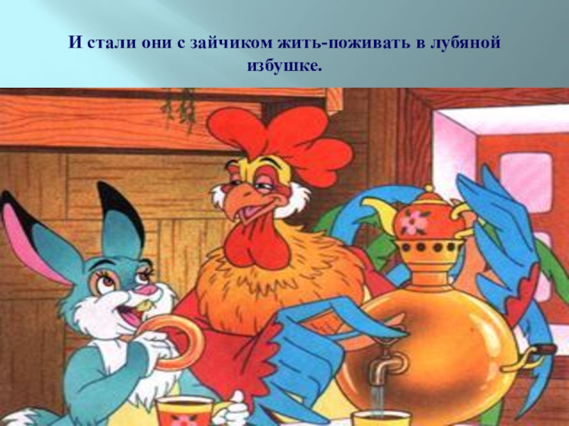 Слайд 22И стали они с зайчиком жить-поживать в лубяной избушке.