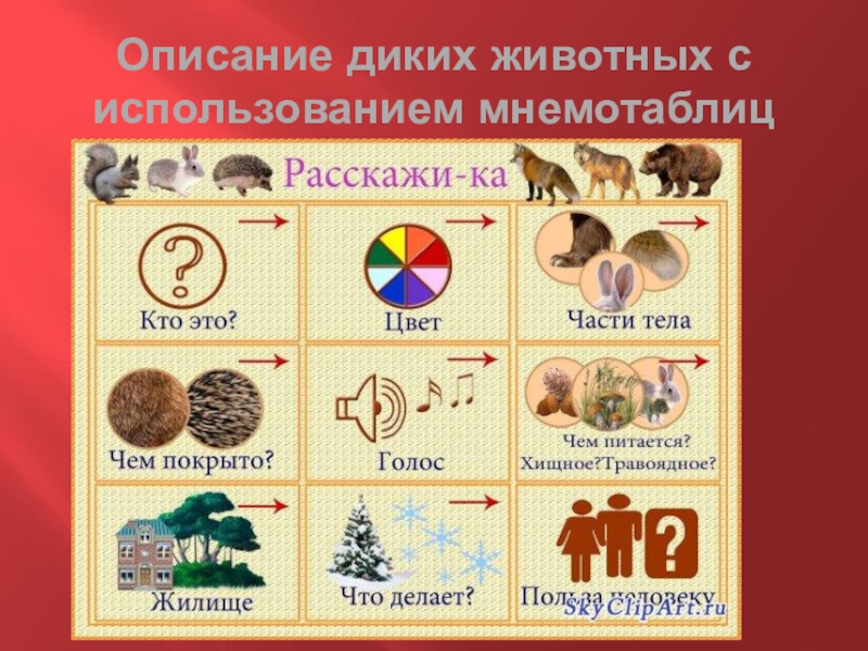 Слайд 3Описание диких животных с использованием мнемотаблиц