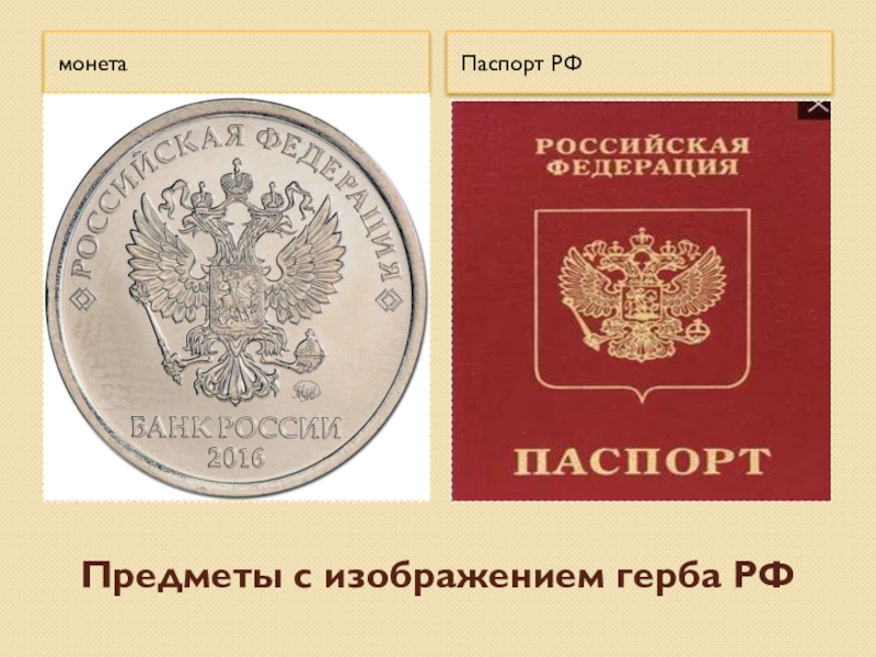 Предметы с изображением герба РФмонетаПаспорт РФ