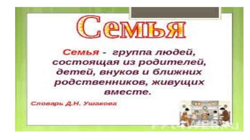 Презентация, доклад по развитию речи на тему Семья ( 1 класс)