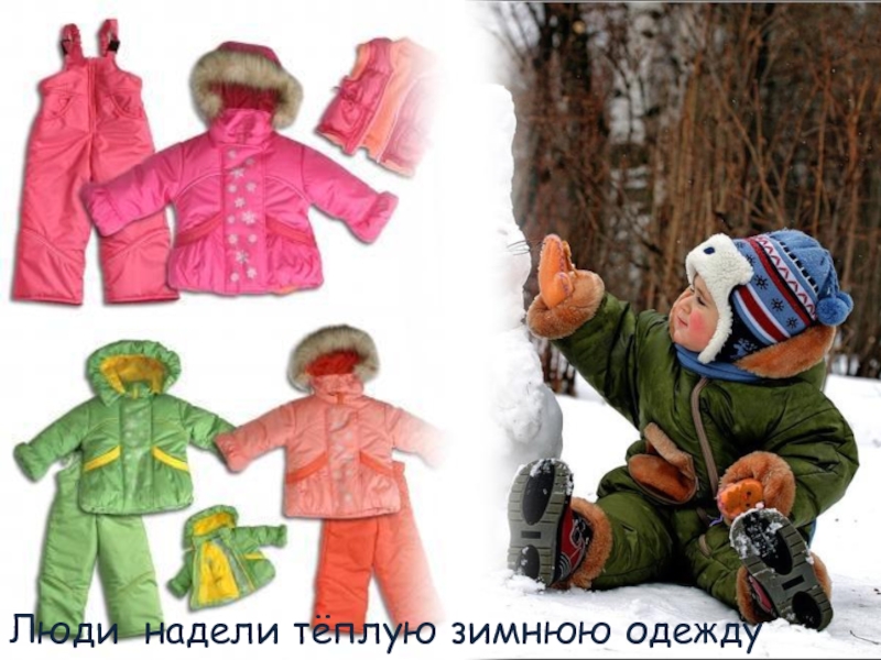 Слайд 8 Люди надели тёплую зимнюю одежду