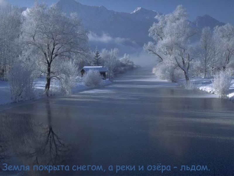 Слайд 2 Земля покрыта снегом, а реки и озёра – льдом.