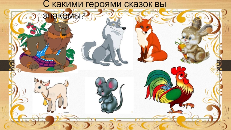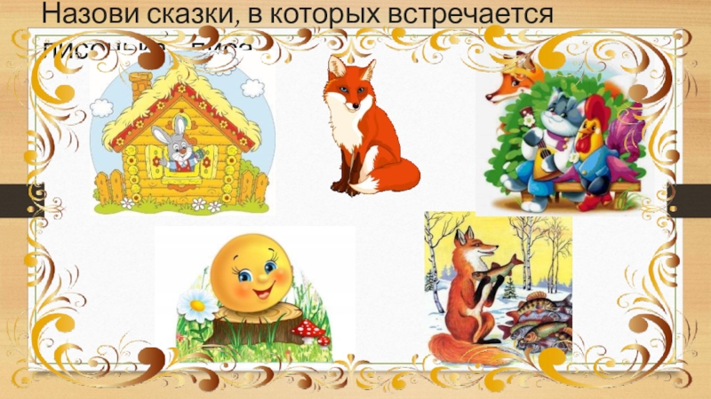 Слайд 5Назови сказки, в которых встречается лисонька - лиса
