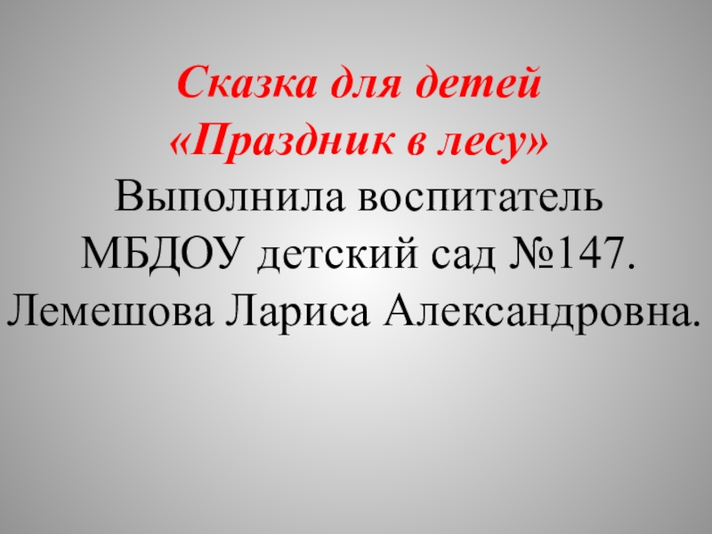 Сказка для детей«Праздник в лесу» Выполнила воспитатель МБДОУ детский сад №147.Лемешова Лариса Александровна.