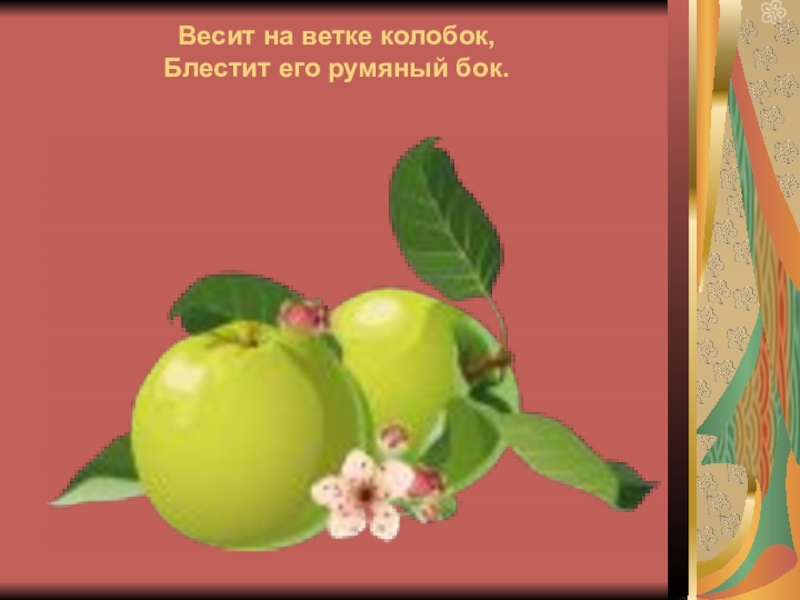 Слайд 12Весит на ветке колобок, Блестит его румяный бок.