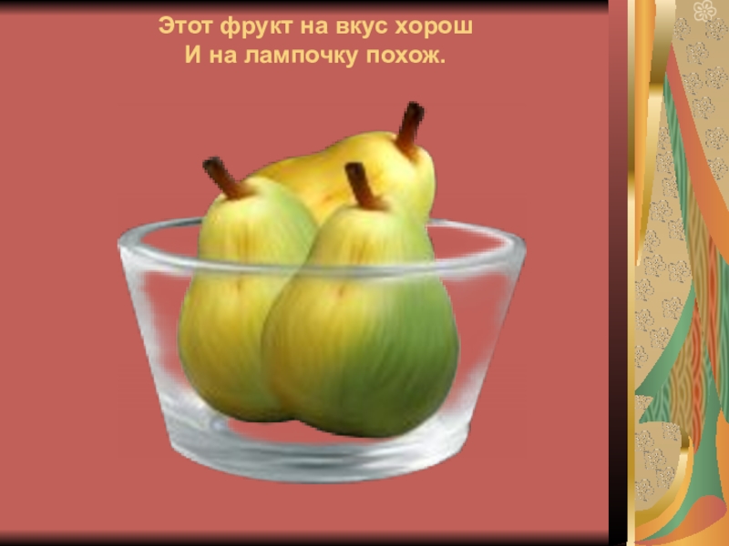 Слайд 8Этот фрукт на вкус хорош  И на лампочку похож.