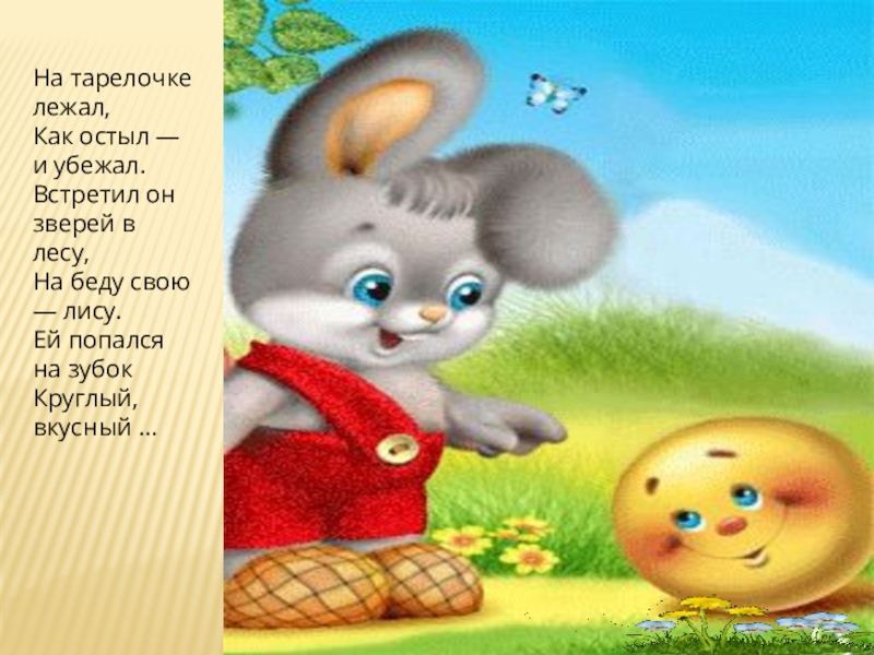 Слайд 4На тарелочке лежал, Как остыл — и убежал. Встретил он зверей в лесу, На