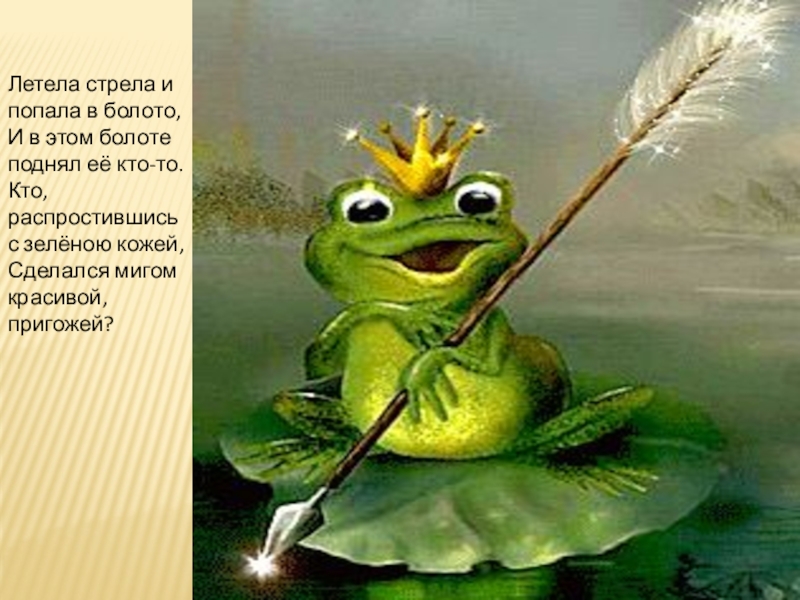Слайд 5Летела стрела и попала в болото, И в этом болоте поднял её