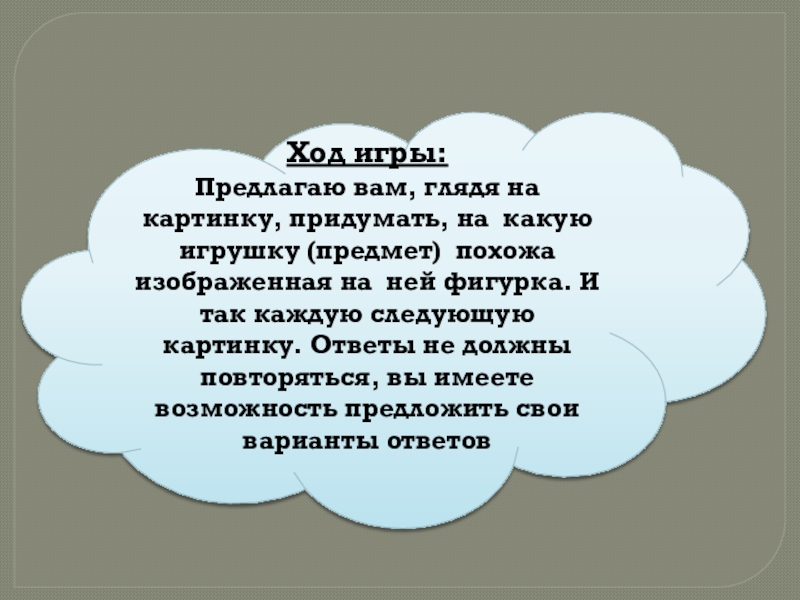 Цель: Научить придумывать разнообразные ответы, основываясь на одном и том же схематическом изображении предмета.