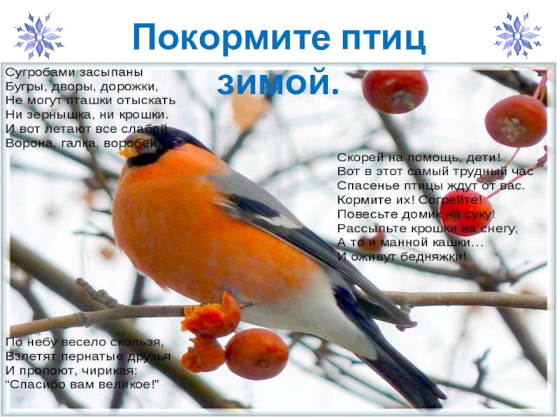 Слайд 8Покормите птиц зимой.