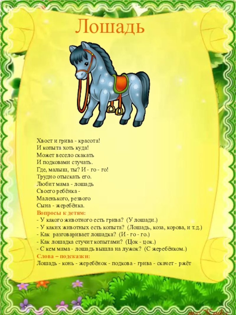 - На кого похож ослик? ( На лошадь.)