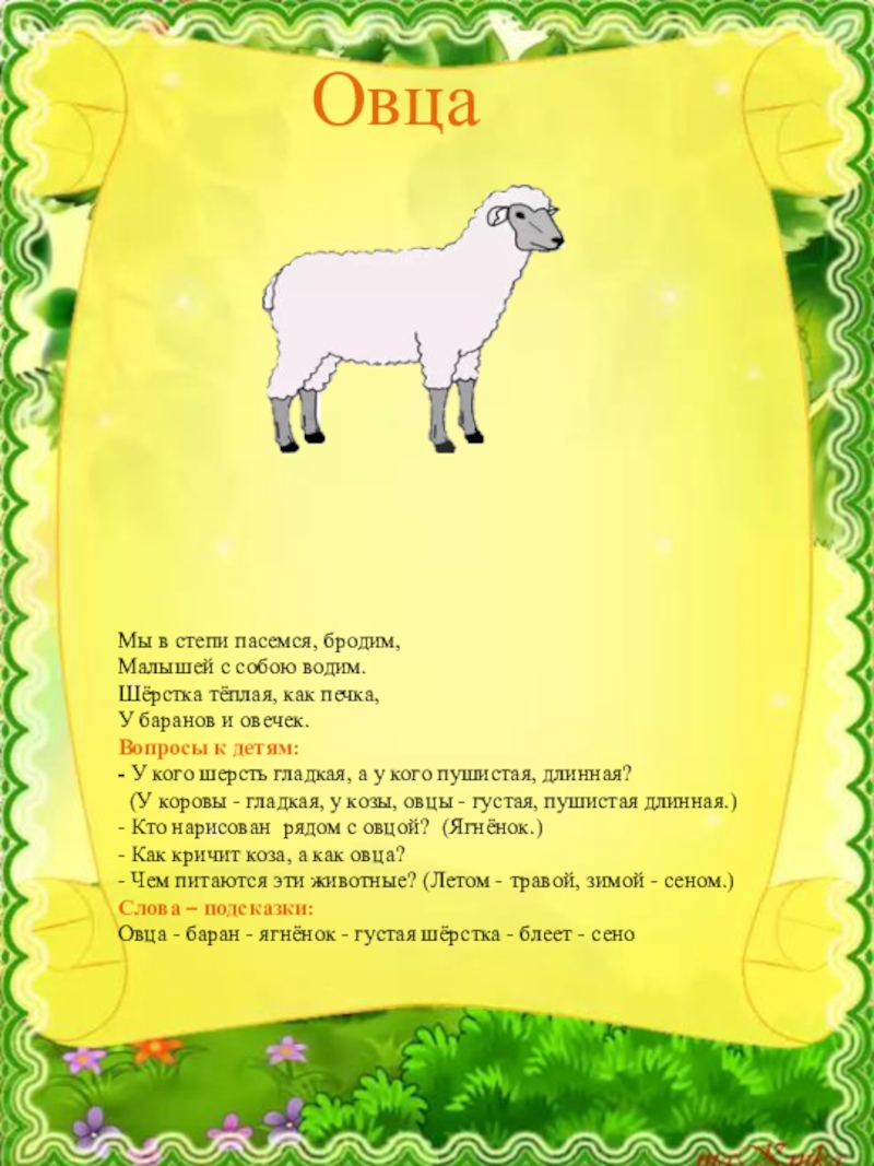 - Какая у козы и козлёнка шёрстка? (Длинная, густая, пушистая.)