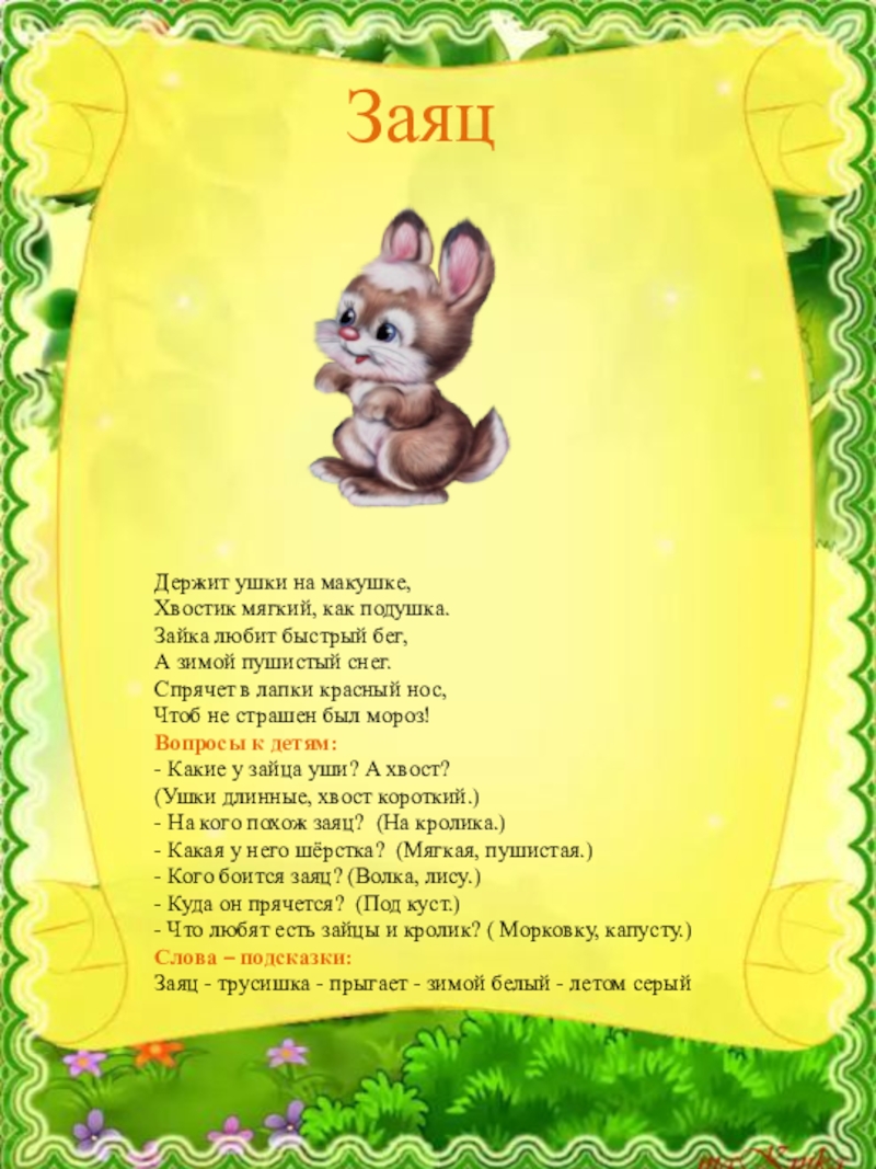 Заяц - трусишка - прыгает - зимой белый - летом серый