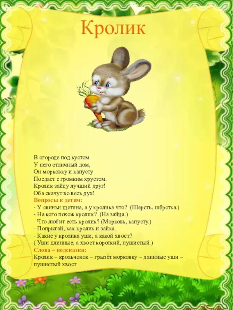 (Ушки длинные, хвост короткий.)