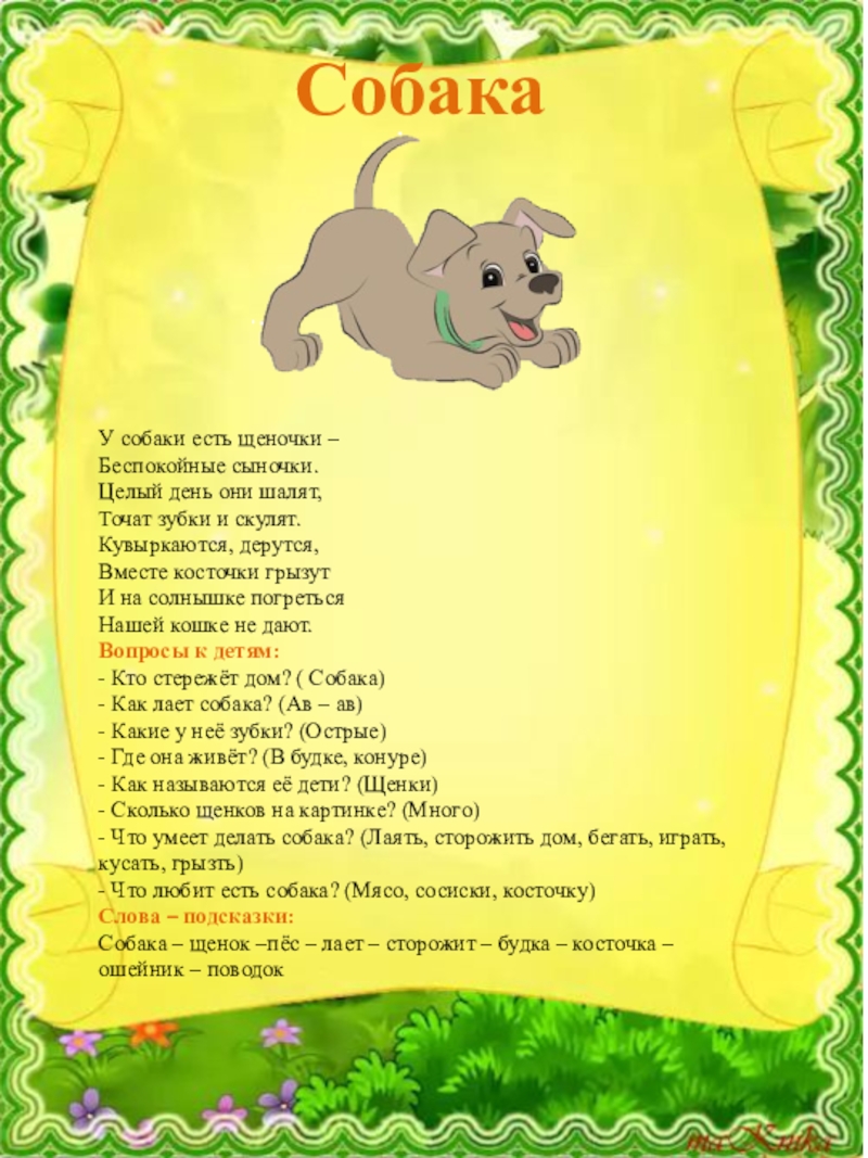 - Как называются её дети? (Щенки)