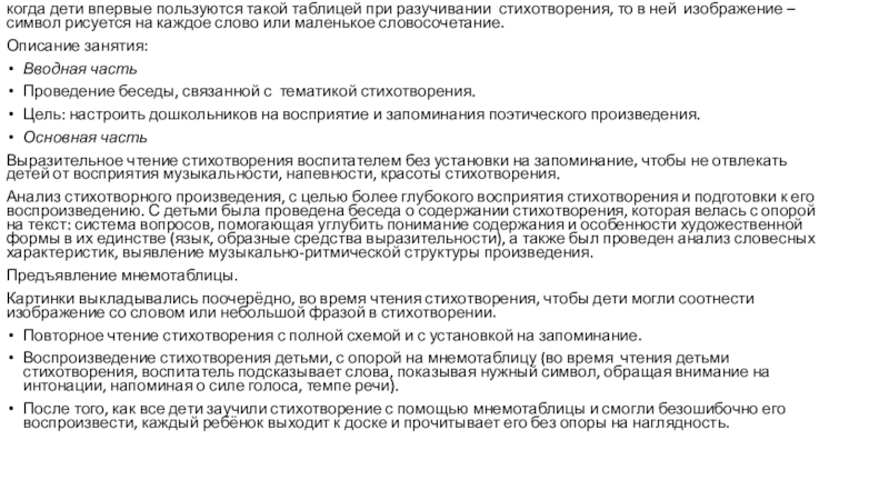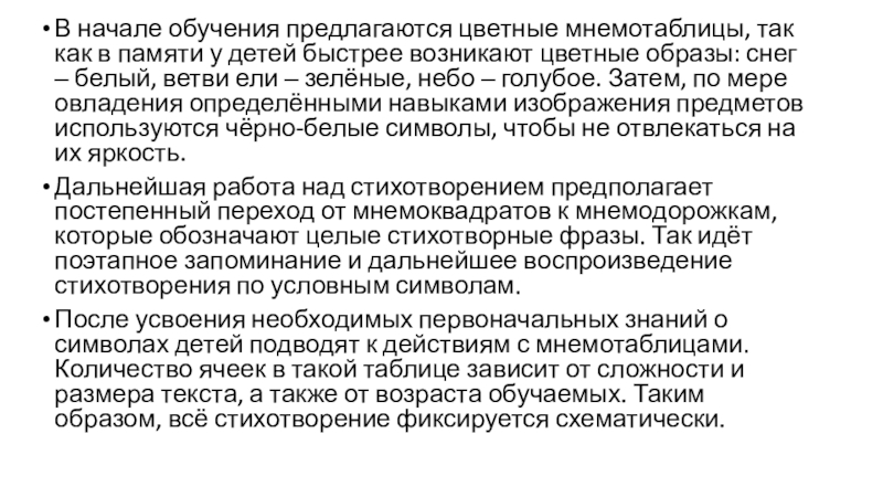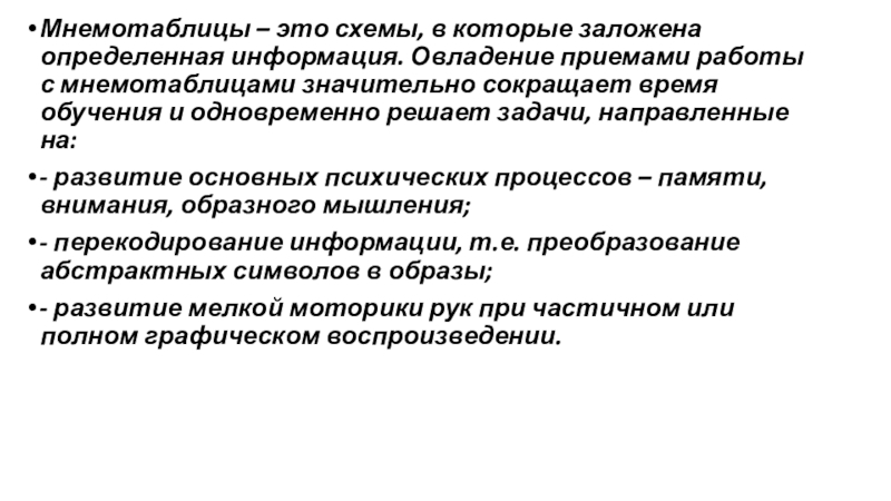 работы с мнемотаблицами значительно сокращает время обучения и одновременно решает задачи, направленные на: