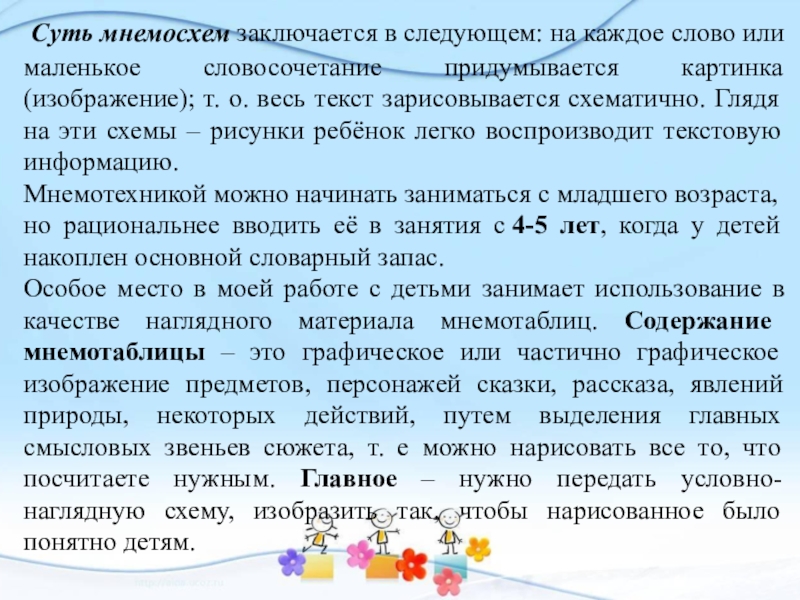 Слайд 6 Суть мнемосхем заключается в следующем: на каждое слово или маленькое словосочетание