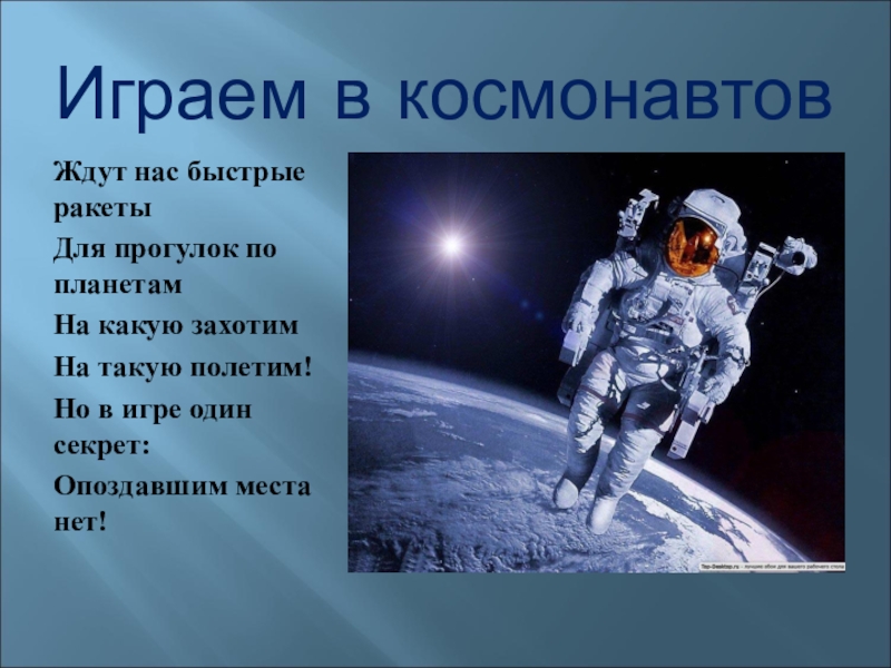 Слайд 4Играем в космонавтов