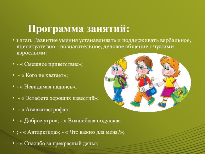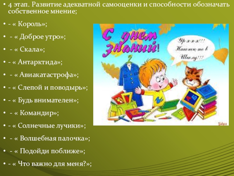 Слайд 84 этап. Развитие адекватной самооценки и способности обозначать собственное мнение;