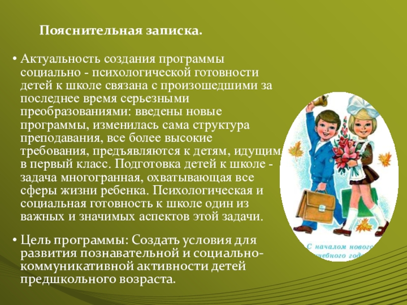 Цель программы: Создать условия для развития познавательной и социально-коммуникативной активности детей предшкольного возраста.