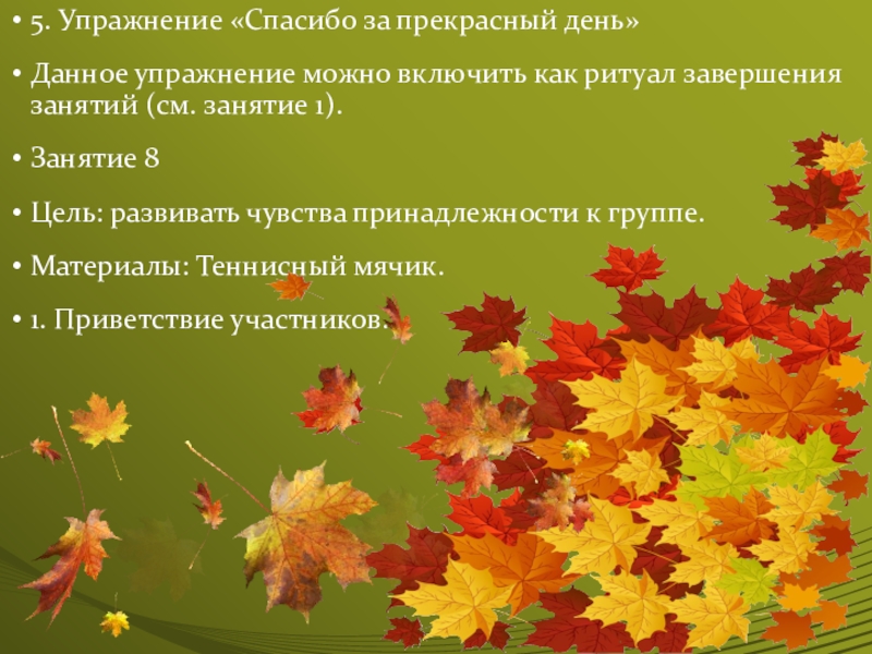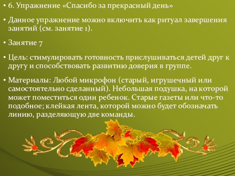 Слайд 125. Упражнение «Спасибо за прекрасный день»