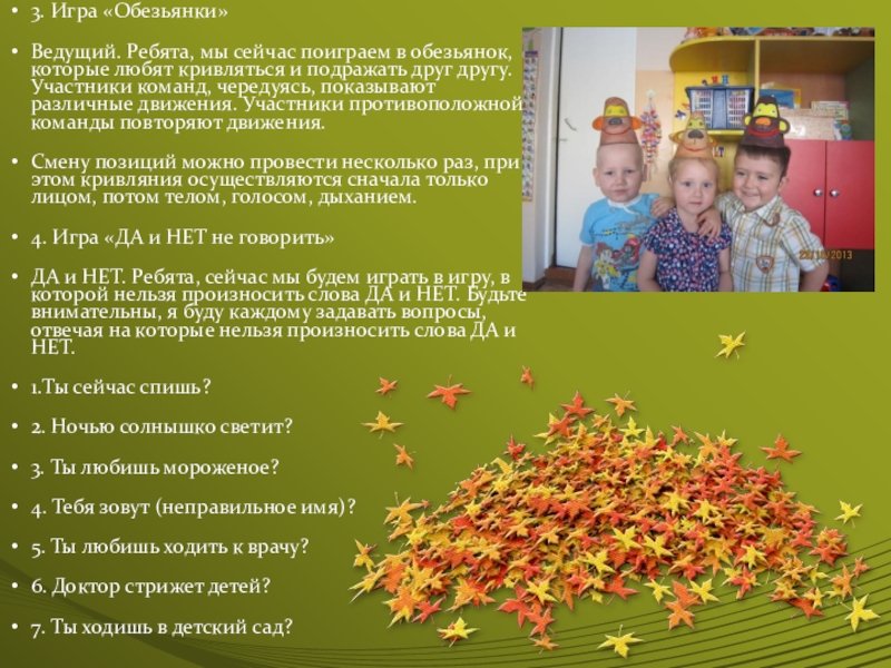 Ведущий. Ребята, мы сейчас поиграем в обезьянок, которые любят