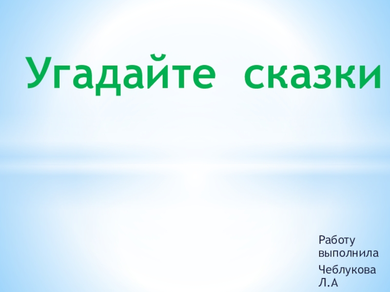 Работу выполнилаЧеблукова Л.А Угадайте сказки