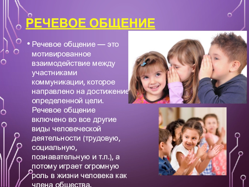 Речевое общение — это мотивированное взаимодействие между участниками коммуникации, которое