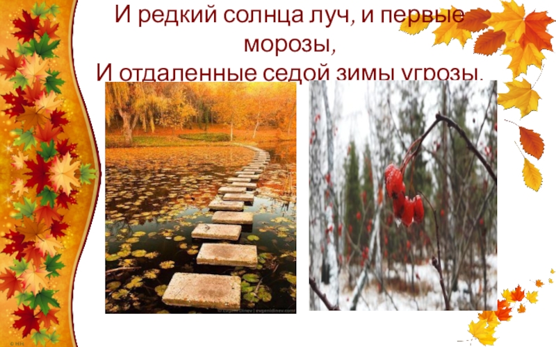Слайд 6И редкий солнца луч, и первые морозы, И отдаленные седой зимы угрозы.