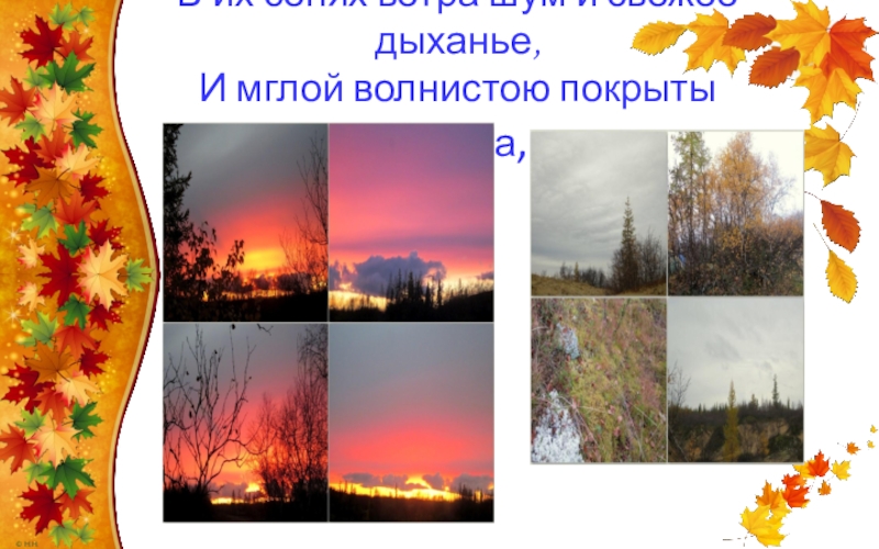 Слайд 5В их сенях ветра шум и свежее дыханье, И мглой волнистою покрыты