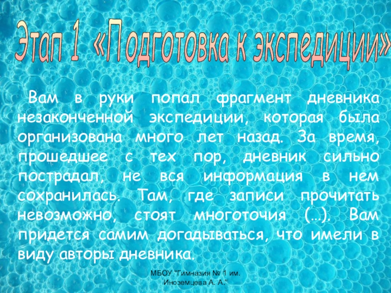 1. Сформулируйте, какую задачу вам предстоит решить в этой экспедиции.