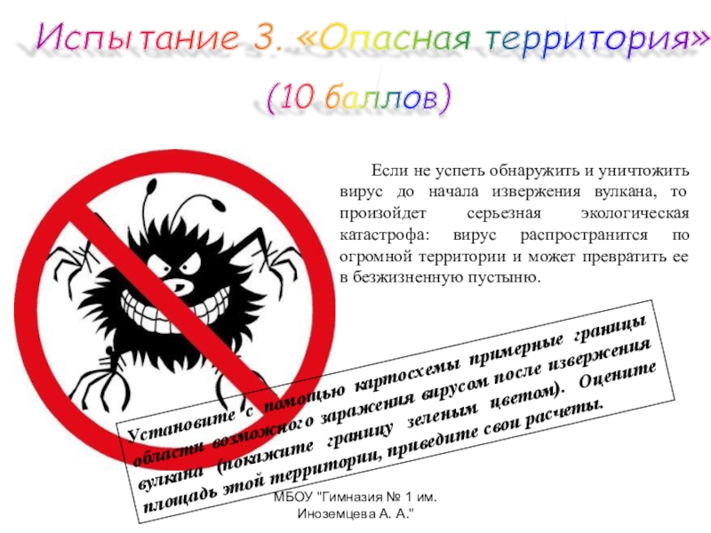 Установите с помощью картосхемы примерные границы области возможного заражения вирусом после извержения вулкана (покажите границу зеленым цветом). Оцените площадь этой территории, приведите свои расчеты.