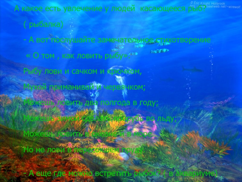 Слайд 10А какое есть увлечение у людей касающееся рыб?