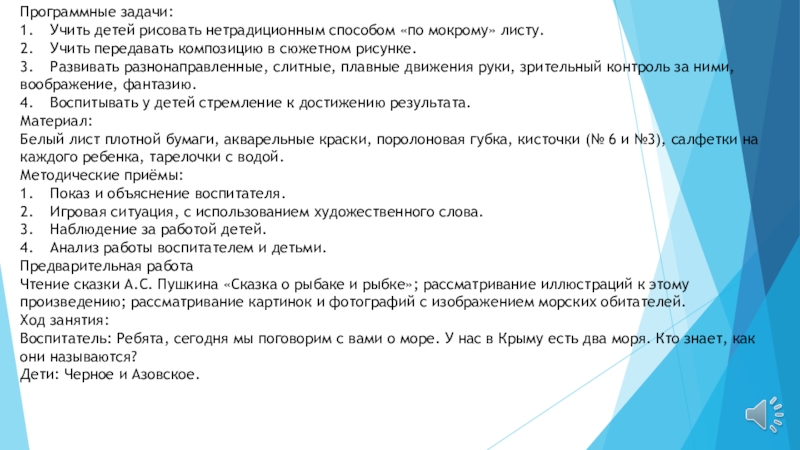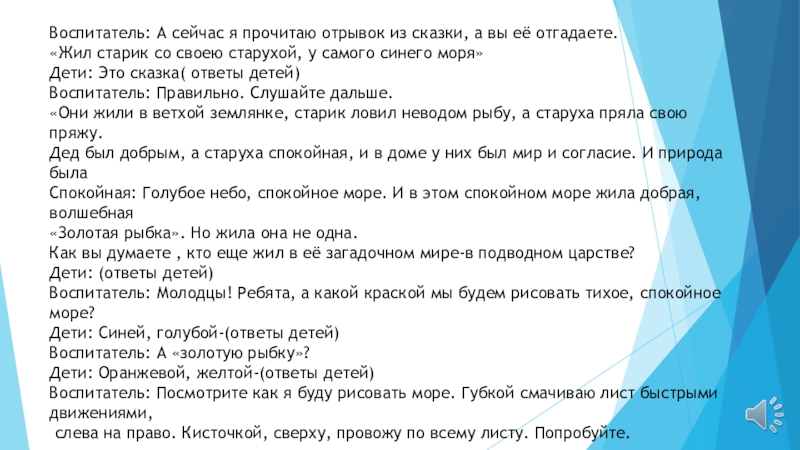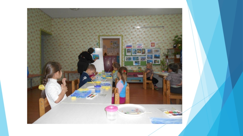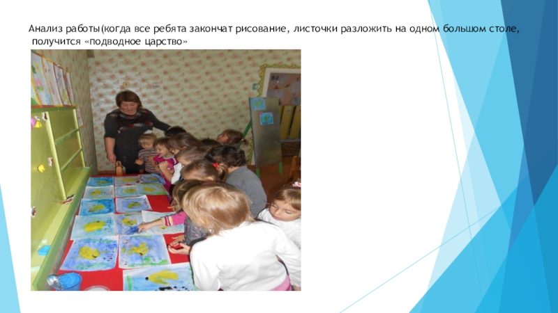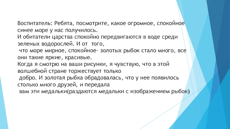 Слайд 23Воспитатель: Ребята, посмотрите, какое огромное, спокойное синее море у нас получилось.